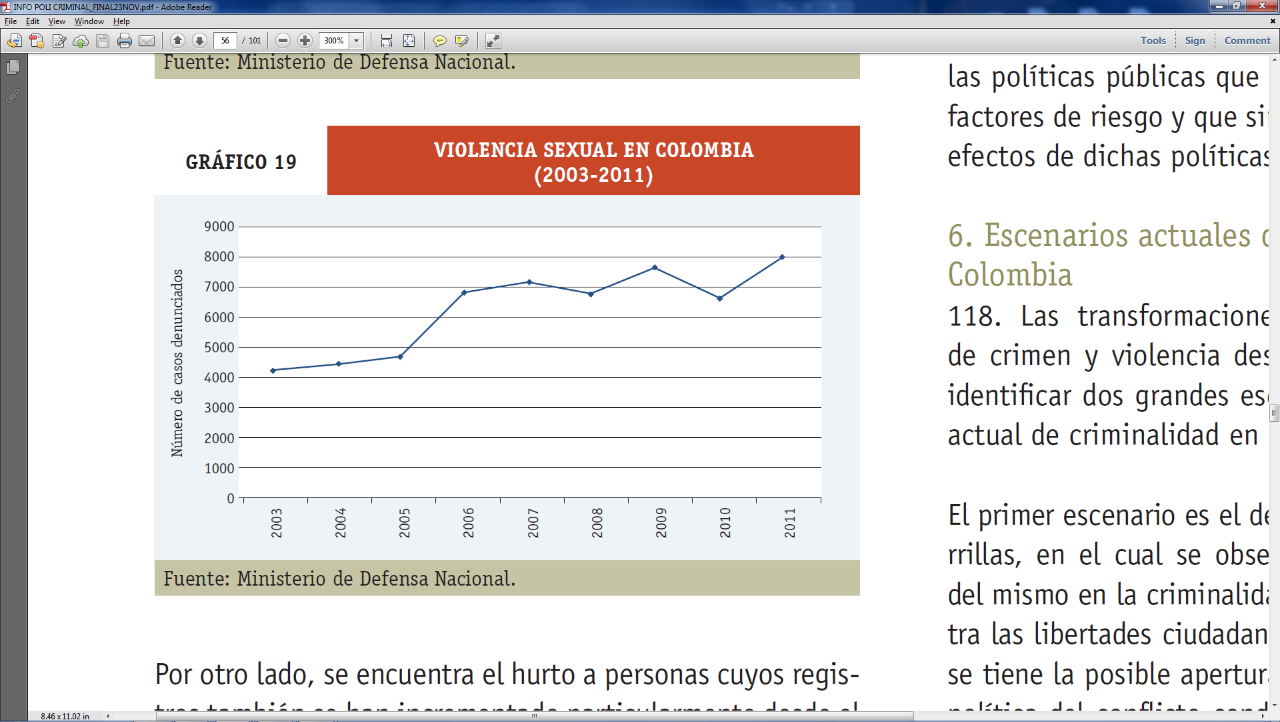 1112 Dijo el Director al respecto: “[…] en la parte operacional de los centros carcelarios encontramos que tenemos una diversidad de poblaciones de internos. Tenemos población de justicia y paz, tenemos población que están hoy en día alojados en el pabellón R-Sur o llamado parapolítica. Que tenemos también una población de ex miembros de la fuerza pública que ahora se acercan a los mil. Que tenemos población que corresponde a bandas criminales y que tenemos también internos que corresponden a lo que nosotros llamamos delitos sociales. Cuando nosotros miramos ese panorama encontramos que tenemos diversos regímenes internos disciplinarios para las diferentes poblaciones; ahí estamos haciendo un trabajo con el Ministerio de Justicia para que una vez salga el nuevo proyecto de régimen penitenciario podamos unificar los regímenes internos disciplinario y que las disciplinas para todas las poblaciones del país sean las mismas, que no unos tengan ciertos privilegios, como tener computadores que puedan acceder a otros elementos técnicos a diferentes horarios de visita y muchas otras cosas que la opinión pública y que todos conocemos sobre esas poblaciones que recoge el país.” Gaceta del Congreso N° 780 de 2011.